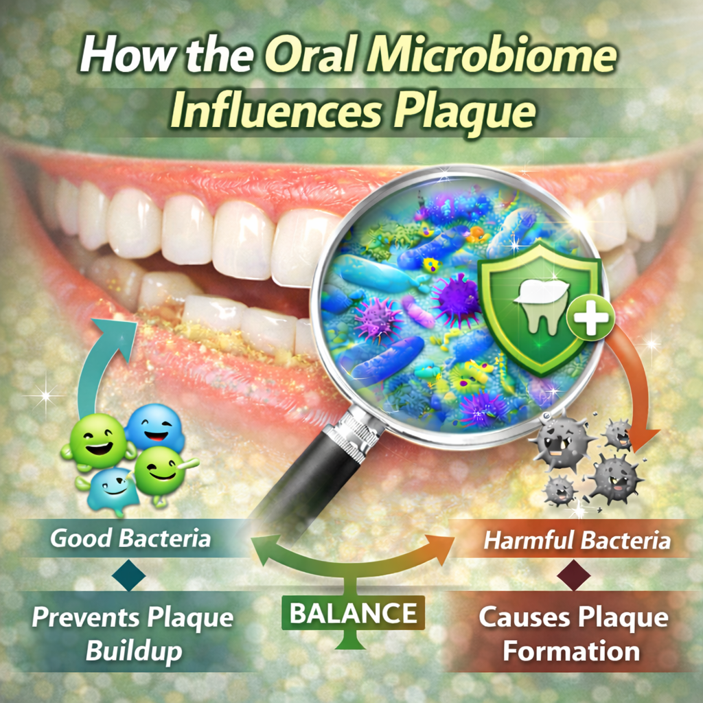 Maintaining a balanced oral environment is one factor that may influence plaque development. The mouth contains a complex ecosystem of microorganisms known as the oral microbiome, and the balance between beneficial and harmful bacteria plays an important role in this system.